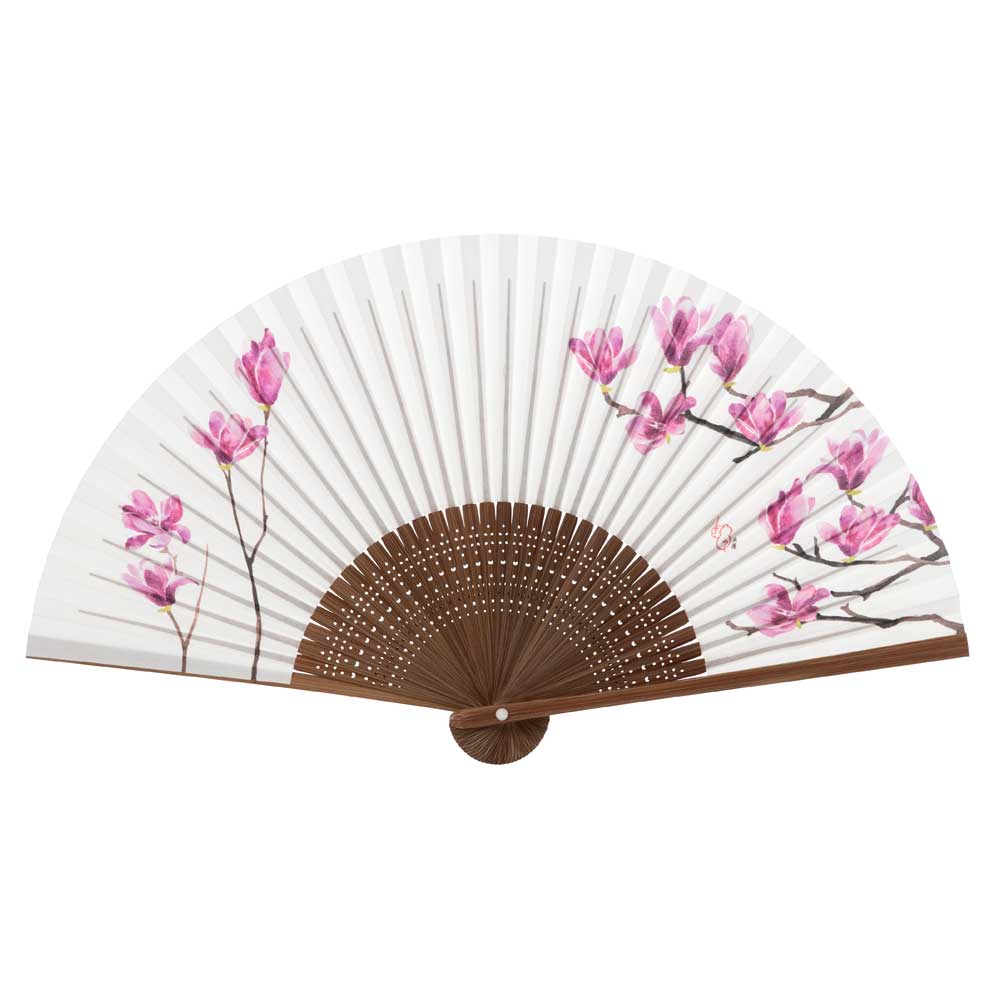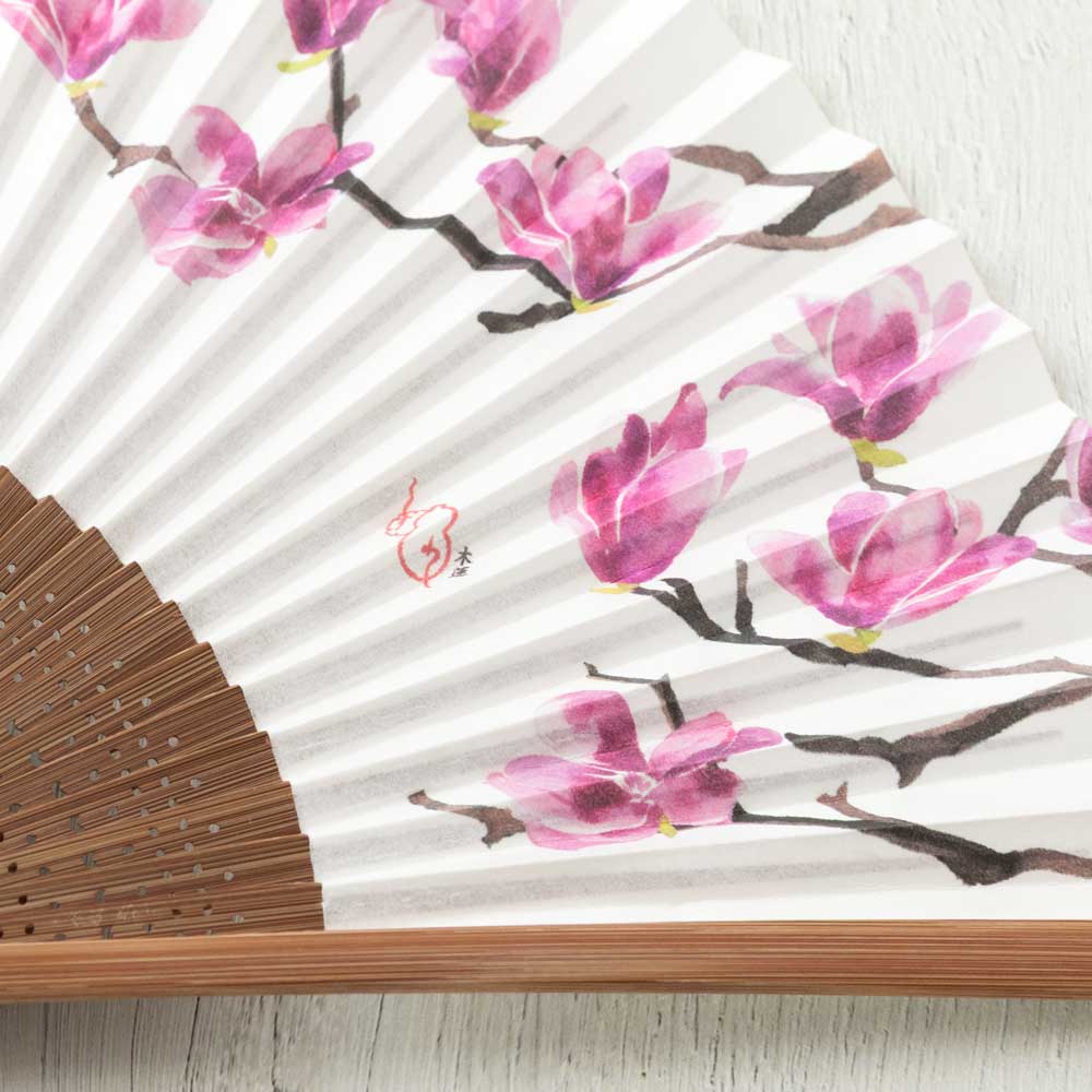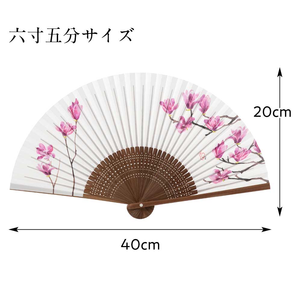 和詩倶楽部 女房扇 木蓮 和紙の扇子 六寸五分 約20cm やや小ぶり 女性用の定番サイズ レディース 和柄 手張り製 国産扇骨35本 日本製