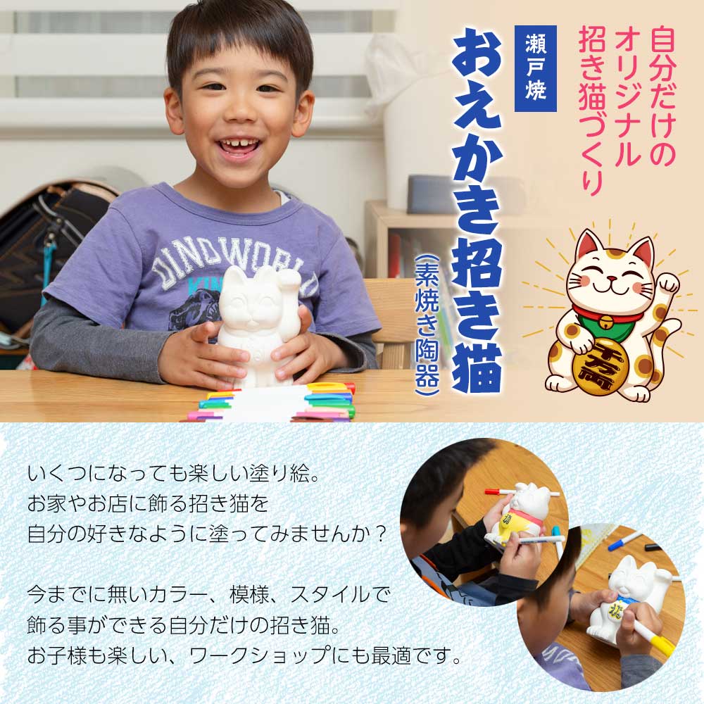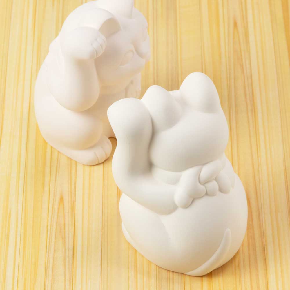 瀬戸焼 おえかき招き猫 4号:高さ12.8cm 立体ぬりえ 素焼き陶器 工作用 ワークショップに 手作り体験 親子で楽しめる自由研究
