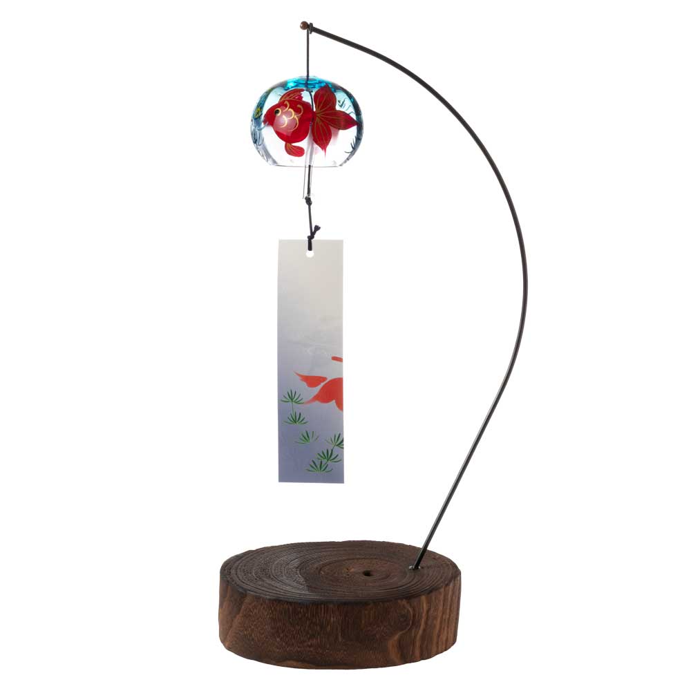 木之本 ぎやまん風鈴+スタンドセット 和金・マリンブルー 室内卓上飾り用 クリスタルガラス ハンドクラフト 和風和柄のウィンドチャイム 日本製 福島県の工芸品