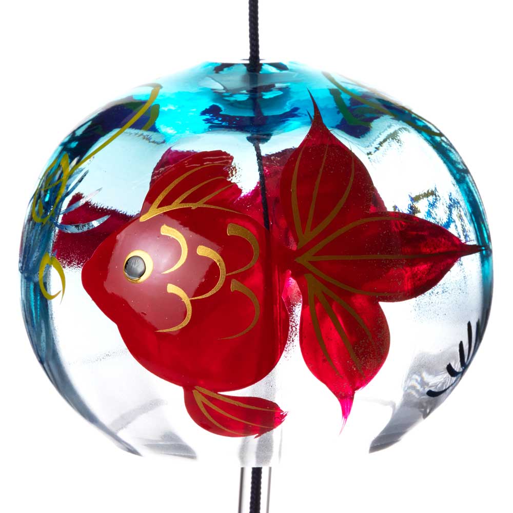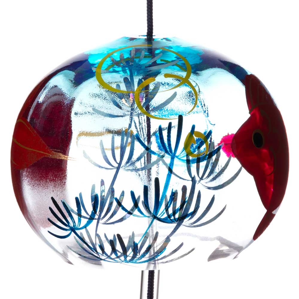 クリスタルガラスを使用した、ぬくもりのある透明感が特徴の風鈴に、その透明感を生かした柄を内側にさりげなく描いた、立体感のある柄のガラス風鈴。
