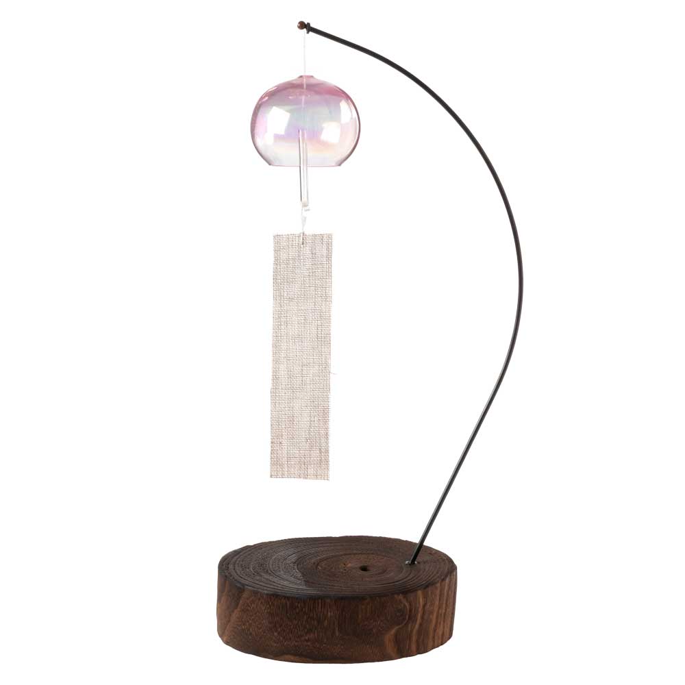 木之本 パール風鈴(大)+スタンドセット 室内卓上飾り用 クリスタルガラス ハンドクラフト 和風和柄のウィンドチャイム 日本製 福島県の工芸品