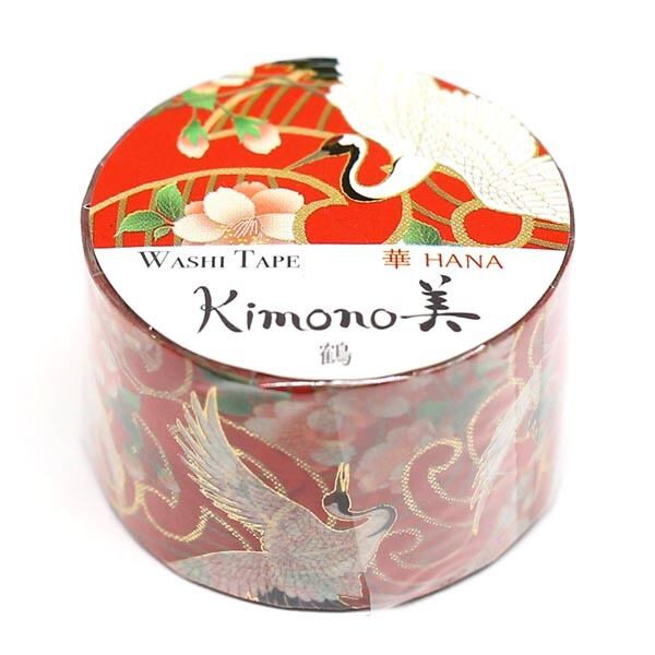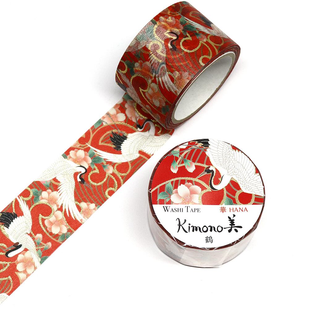 SAIEN Kimono美 華HANA マスキングテープ 鶴 25mm (GR-1008) 5m巻 友禅柄 金箔グラデーション 和紙ステーショナリー