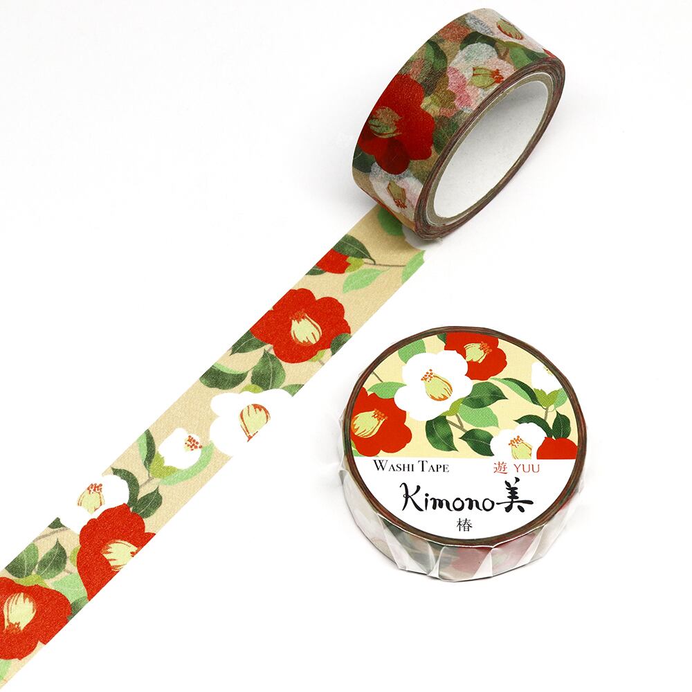 SAIEN Kimono美 遊YUU マスキングテープ 椿 15mm (GR-2005) 7m巻 レトロモダンタイプ 和紙ステーショナリー