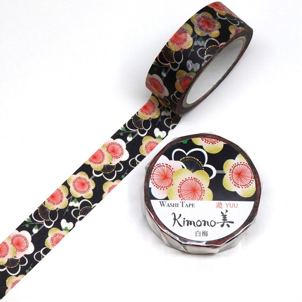SAIEN Kimono美 遊YUU マスキングテープ 白梅 15mm (GR-2027) 7m巻 レトロモダン 金箔グラデーション 和紙ステーショナリー