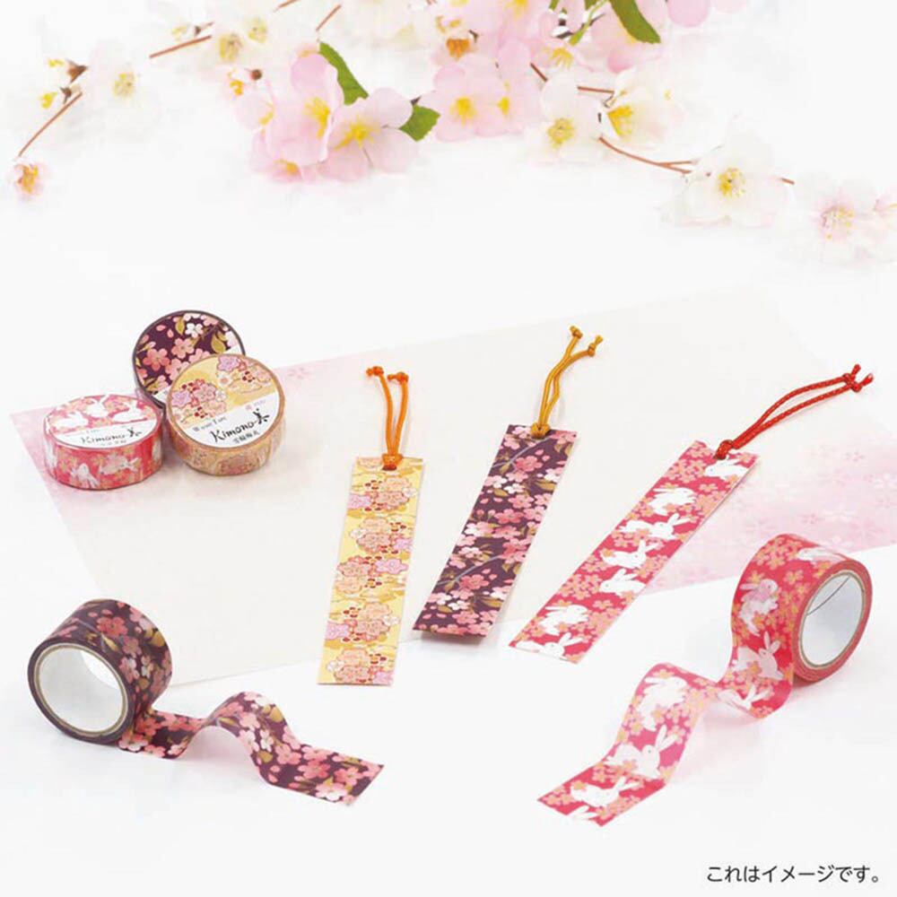 SAIEN Kimono美 遊YUU マスキングテープ うさぎ桜 25mm (GR-2018) 5m巻 レトロモダン 金箔グラデーション 和紙ステーショナリー