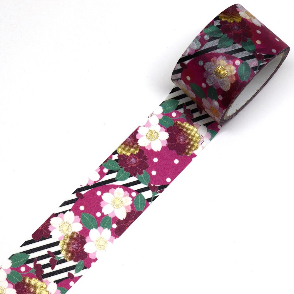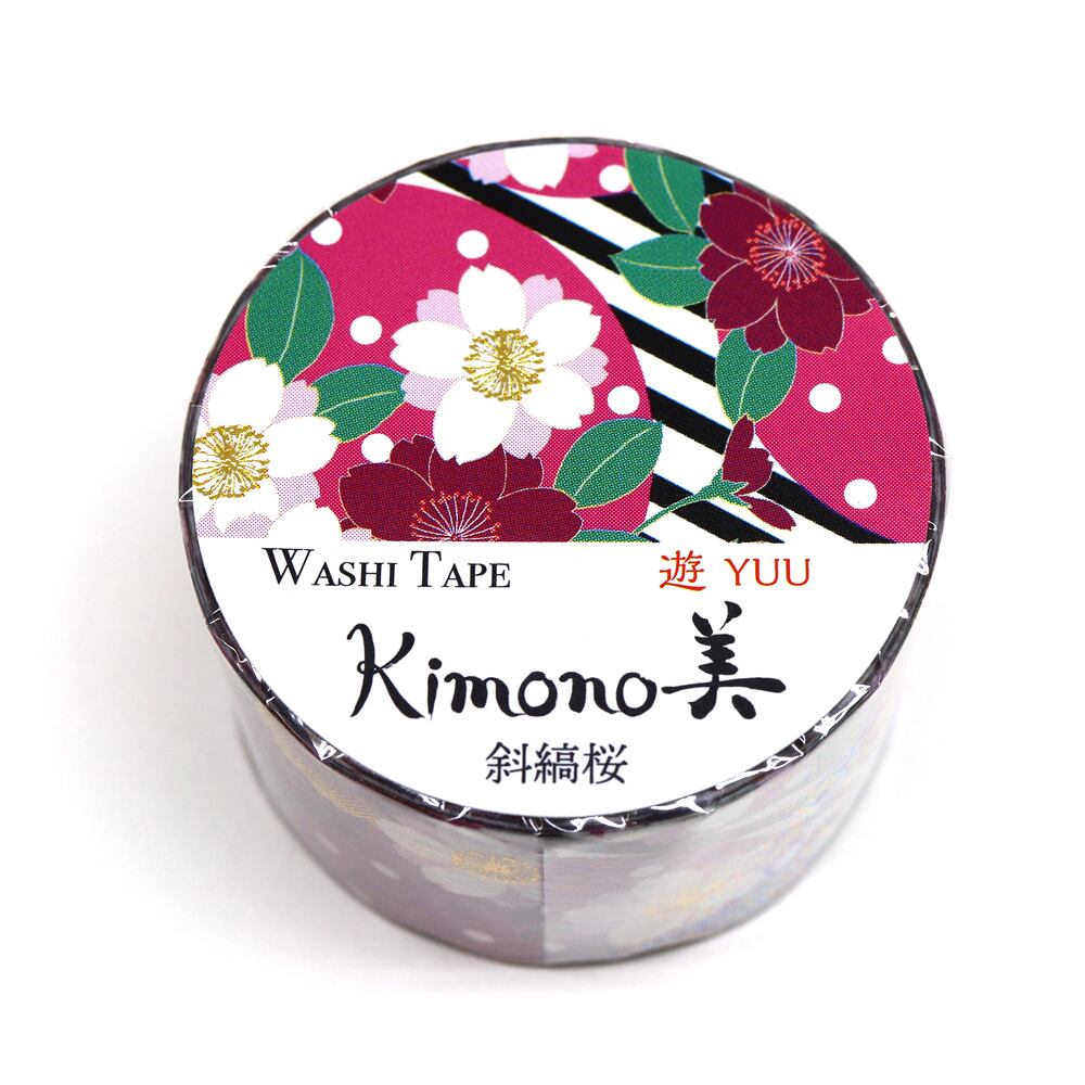SAIEN Kimono美 遊YUU マスキングテープ 斜縞桜 25mm (GR-2022) 5m巻 レトロモダン 金箔グラデーション 和紙ステーショナリー