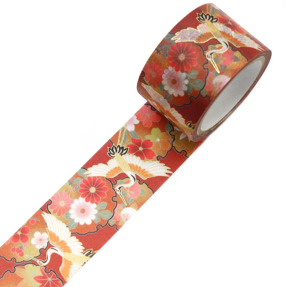 SAIEN Kimono美 遊YUU マスキングテープ 鶴雪輪 25mm (GR-2080) 5m巻 レトロモダン 金箔グラデーション 和紙ステーショナリー