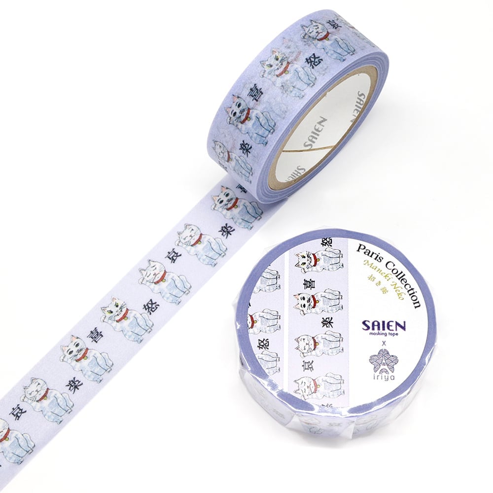 SAIEN Ariane G?RARD マスキングテープ 招き猫 15mm 7m巻 フランスの水彩画家がデザインした和紙ステーショナリー