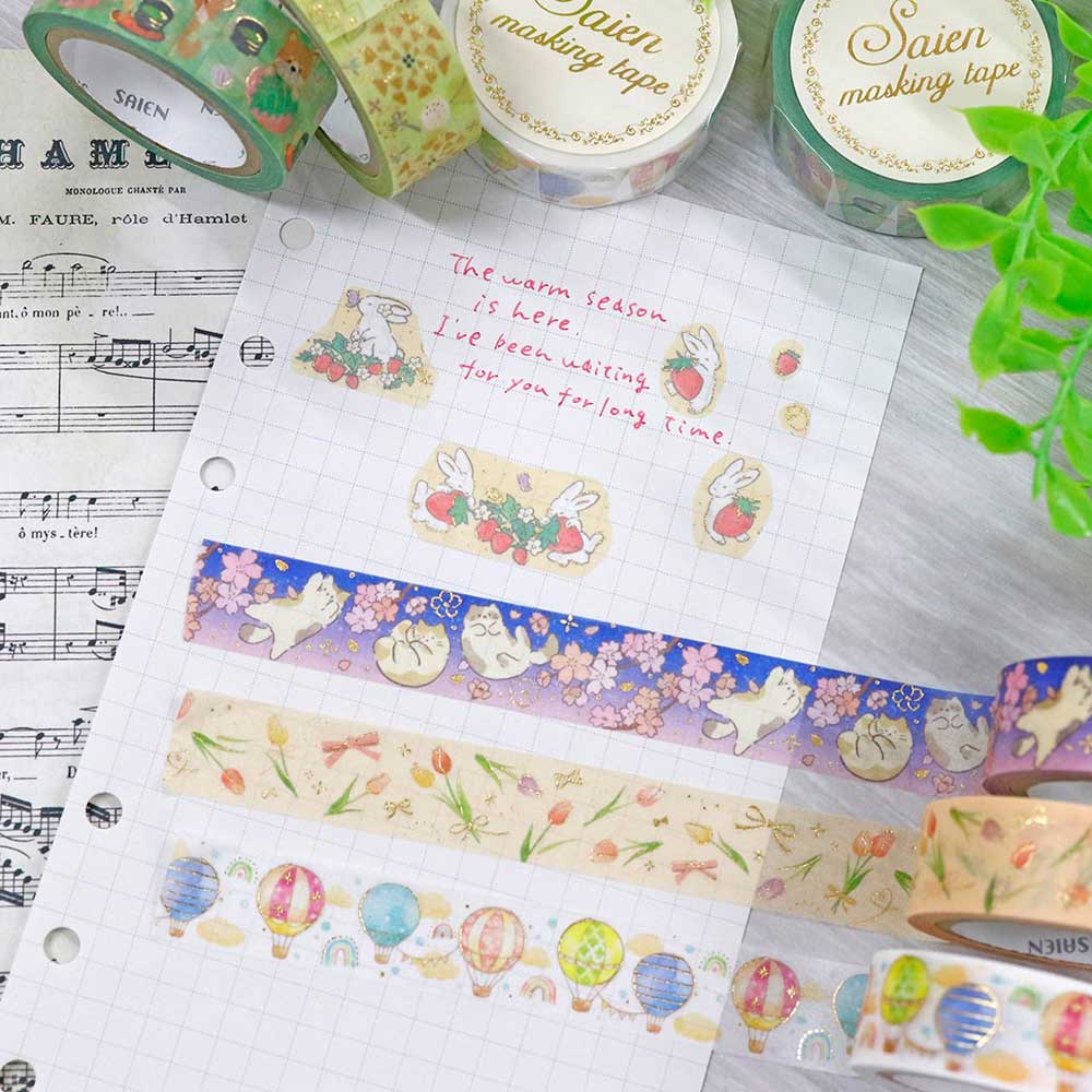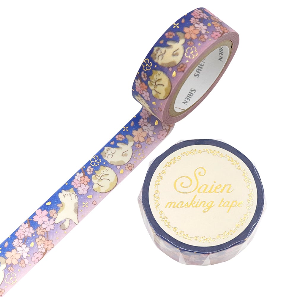 SAIEN 金箔シリーズ マスキングテープ 春の宵 15mm (UR-3086) 7m巻 和紙ステーショナリー