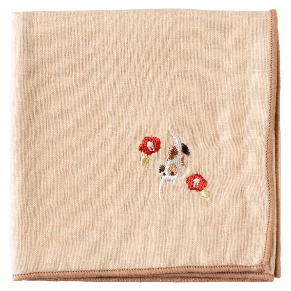 スーベニール 季節の訪れハンカチ 椿(ねこ) 季節の花と動物を刺繍したガーゼハンカチ