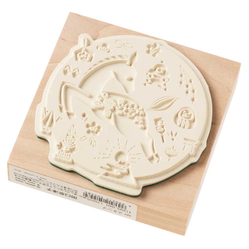 午年めでたづくし (11295-001) 田口奈津子 こどものかお ニューイヤースタンプ大 年賀状 挨拶状 ラバースタンプ ゴム印 はんこ 判子