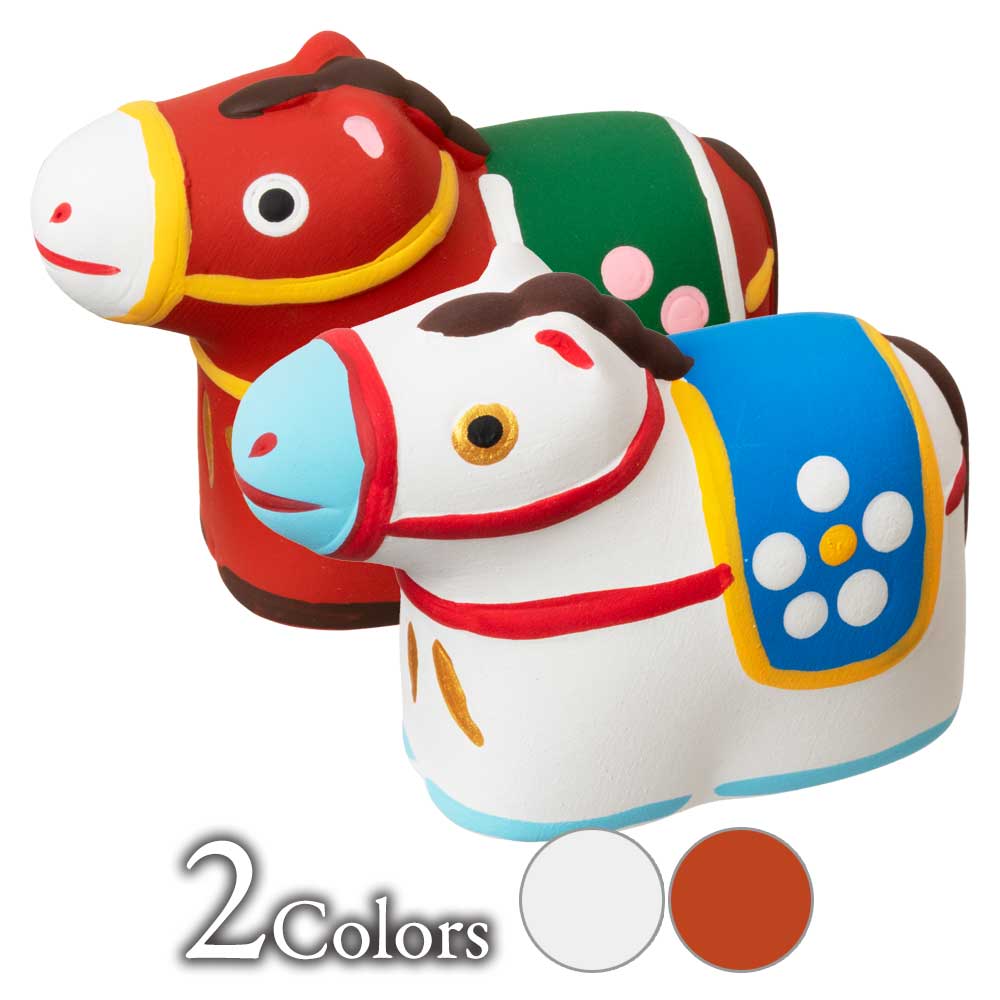 白いウマには白梅、赤いウマには薄紅色の梅が描かれており、2種類並べてお飾りいただくのもおすすめです。