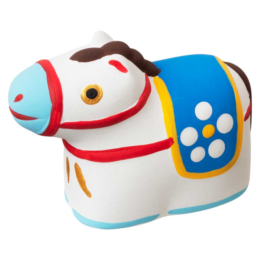 その力強くたくましい印象から、生命力や健康、発展を象徴する招福の縁起物とされ、牛とともに神様の乗り物としても尊ばれてきました。